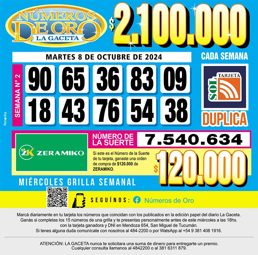 Los Números de Oro de LA GACETA del 8 de octubre de 2024