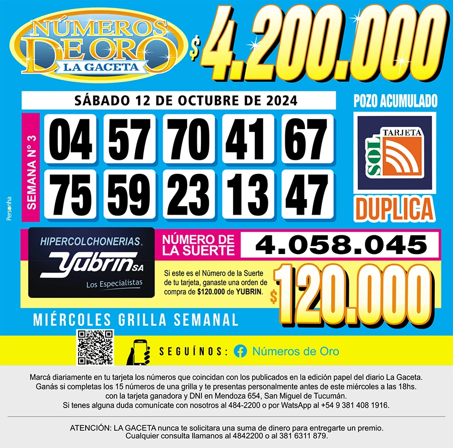 Los Números de Oro de LA GACETA del 12 de octubre de 2024