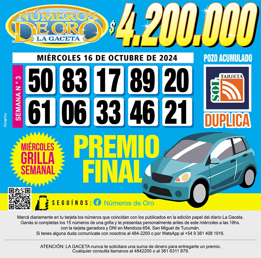 Los Números de Oro de LA GACETA del 16 de octubre de 2024