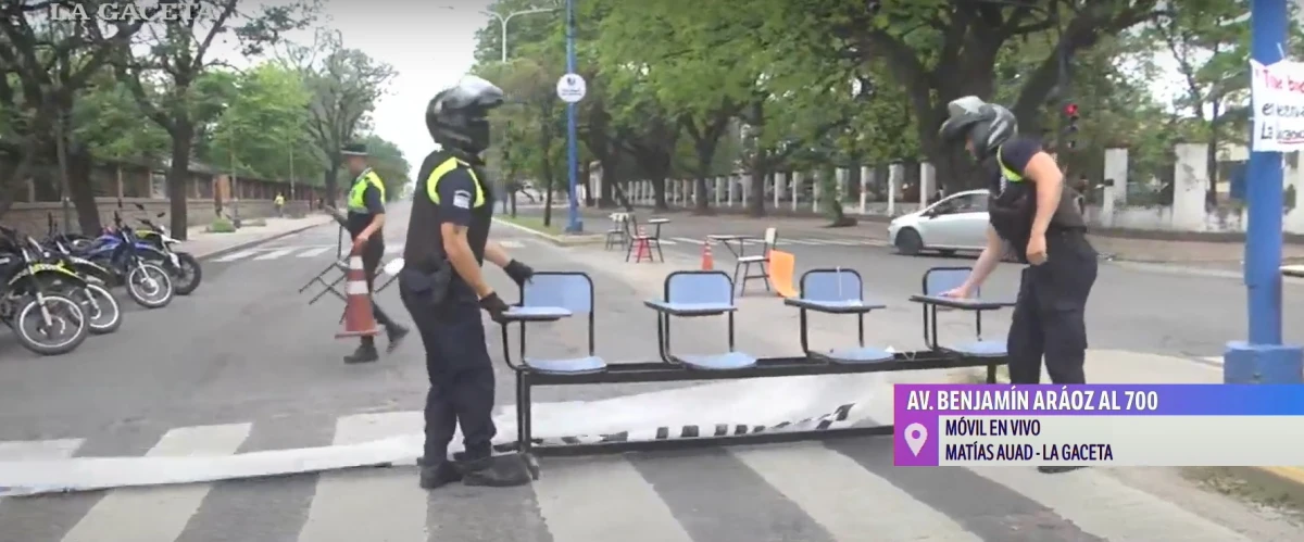 En la asamblea interclaustro del lunes 14 se había decidido la toma de la facultad, dar clases públicas y un corte de calle programado para el miércoles, entre otras medidas. Desde las 8.30, los jóvenes ubicaron los bancos en la avenida Benjamín Aráoz para cursar la materia de Filosofía de la Ciencia. Media hora después, llegaron efectivos de la Policía.
