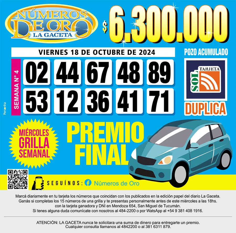 Los Números de Oro de LA GACETA del 18 de octubre de 2024