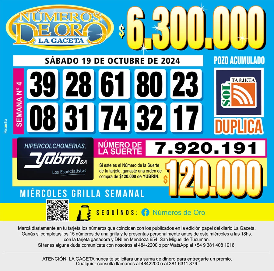 Los Números de Oro de LA GACETA del 19 de octubre de 2024