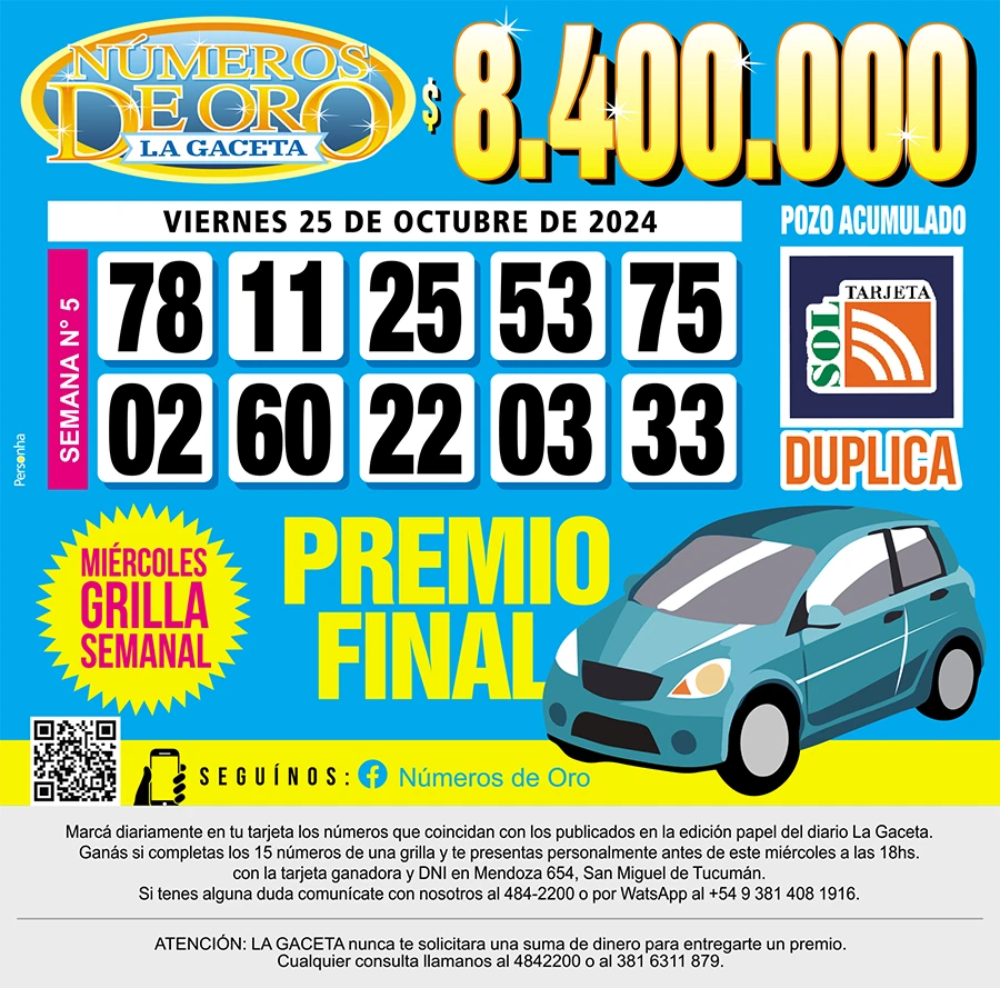 Los Números de Oro de LA GACETA del 25 de octubre de 2024