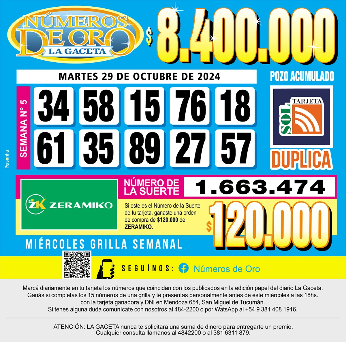 Los Números de Oro de LA GACETA del 29 de octubre de 2024