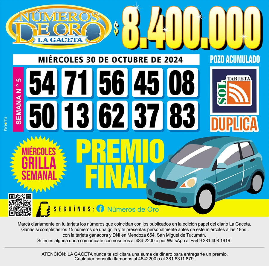 Los Números de Oro de LA GACETA del 30 de octubre de 2024