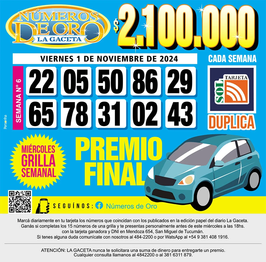 Los Números de Oro de LA GACETA del 1 de noviembre de 2024