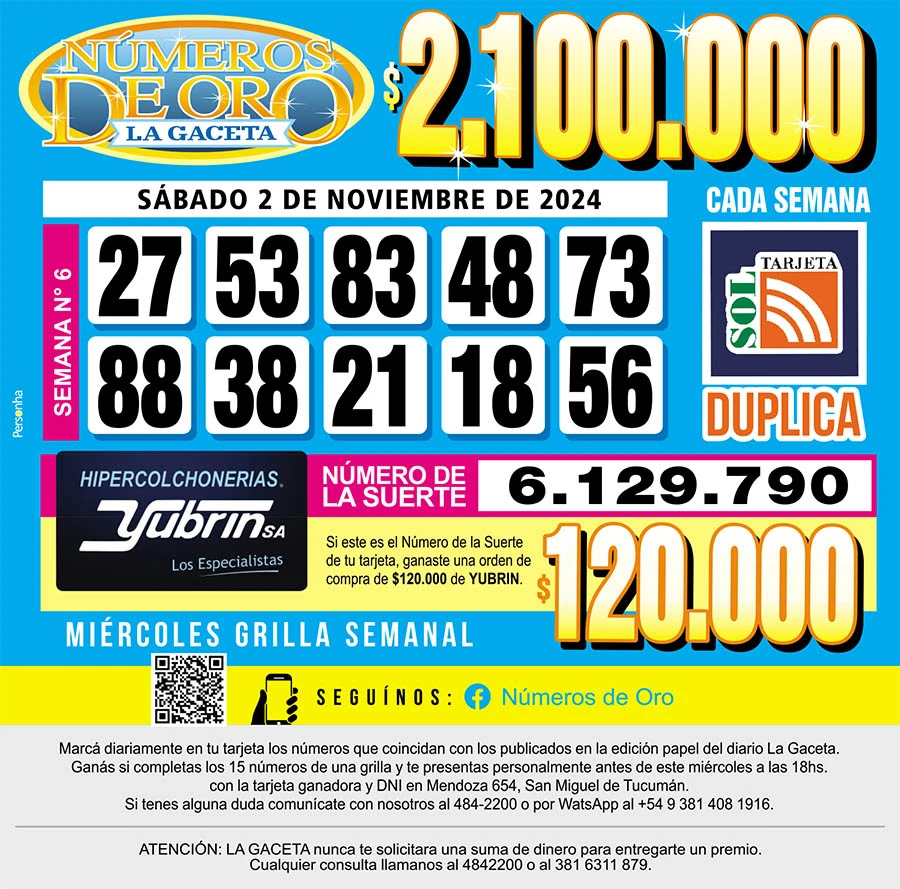 Los Números de Oro de LA GACETA del 2 de noviembre de 2024
