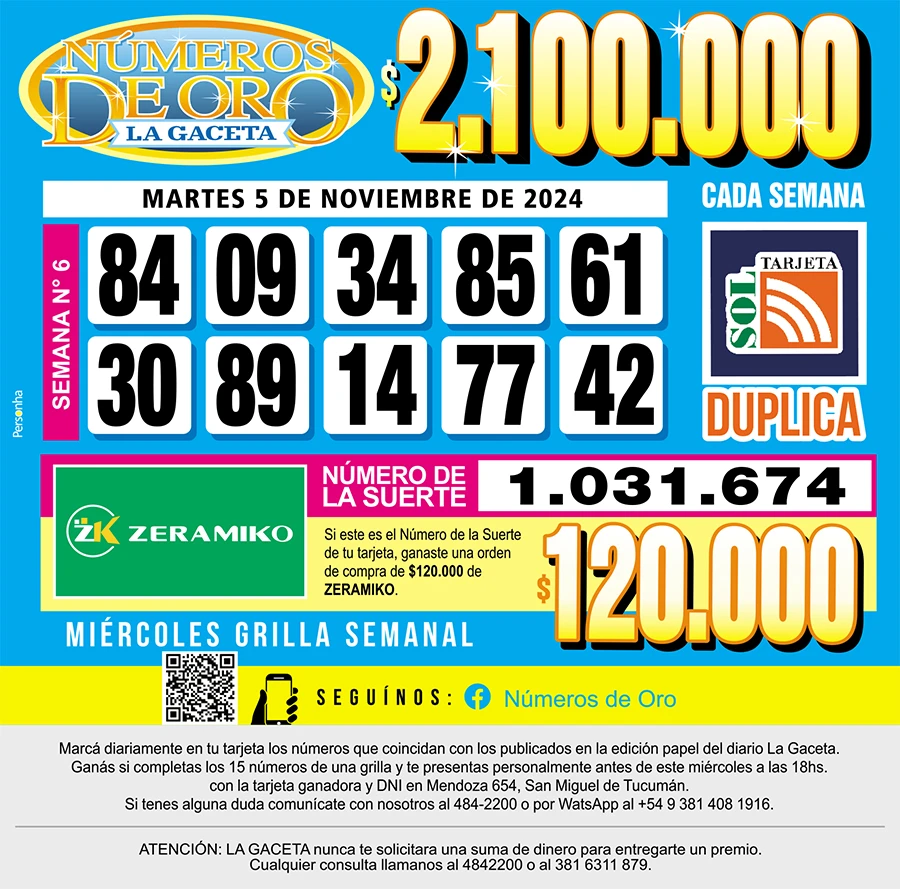 Los Números de Oro de LA GACETA del 5 de noviembre de 2024
