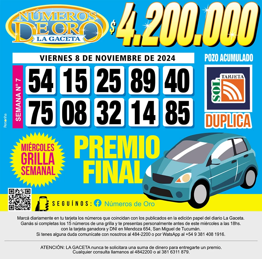 Los Números de Oro de LA GACETA del 8 de noviembre de 2024