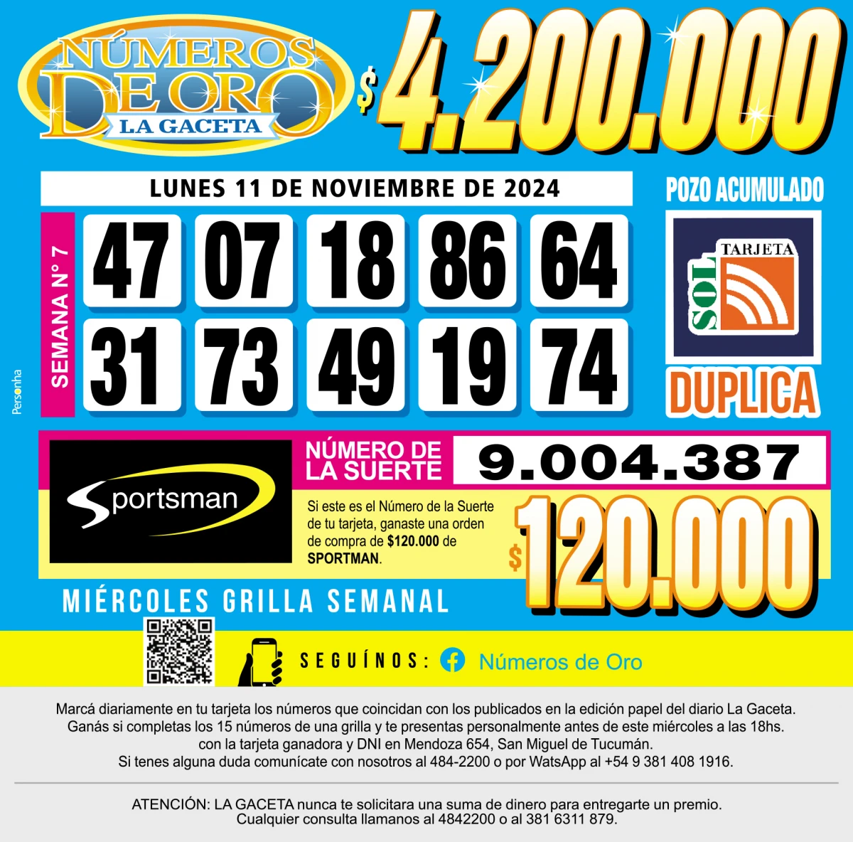 Los Números de Oro de LA GACETA del 11 de noviembre de 2024
