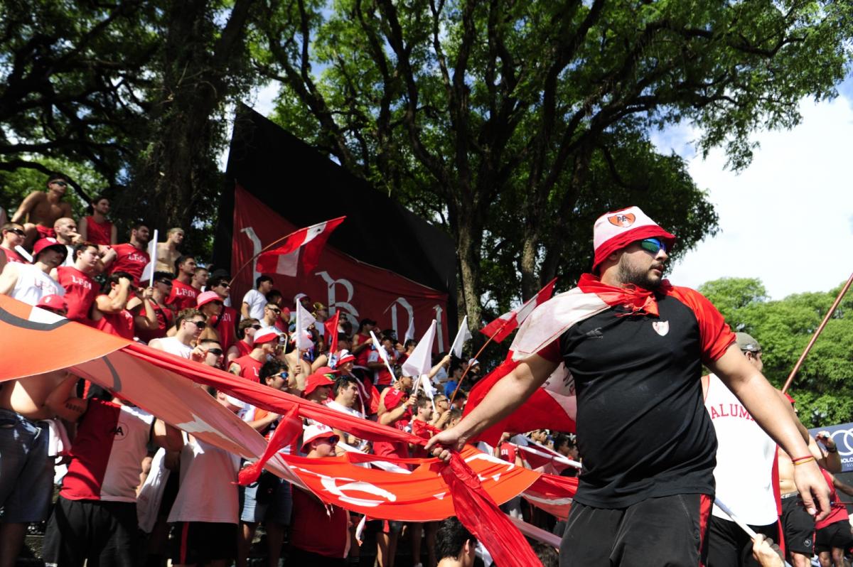 Un grupo de fanáticos identificados como “Los Borrachos del Ingoal” fueron los primeros en llegar al estadio. ¿Por qué? La tarea era clara: ornamentar la tribuna con banderas y tirantes rojiblancos. La idea era que los bonaerenses que viajaron a Tucumán identificaran el sector en el que se ubicarían para vivir el partido decisivo.