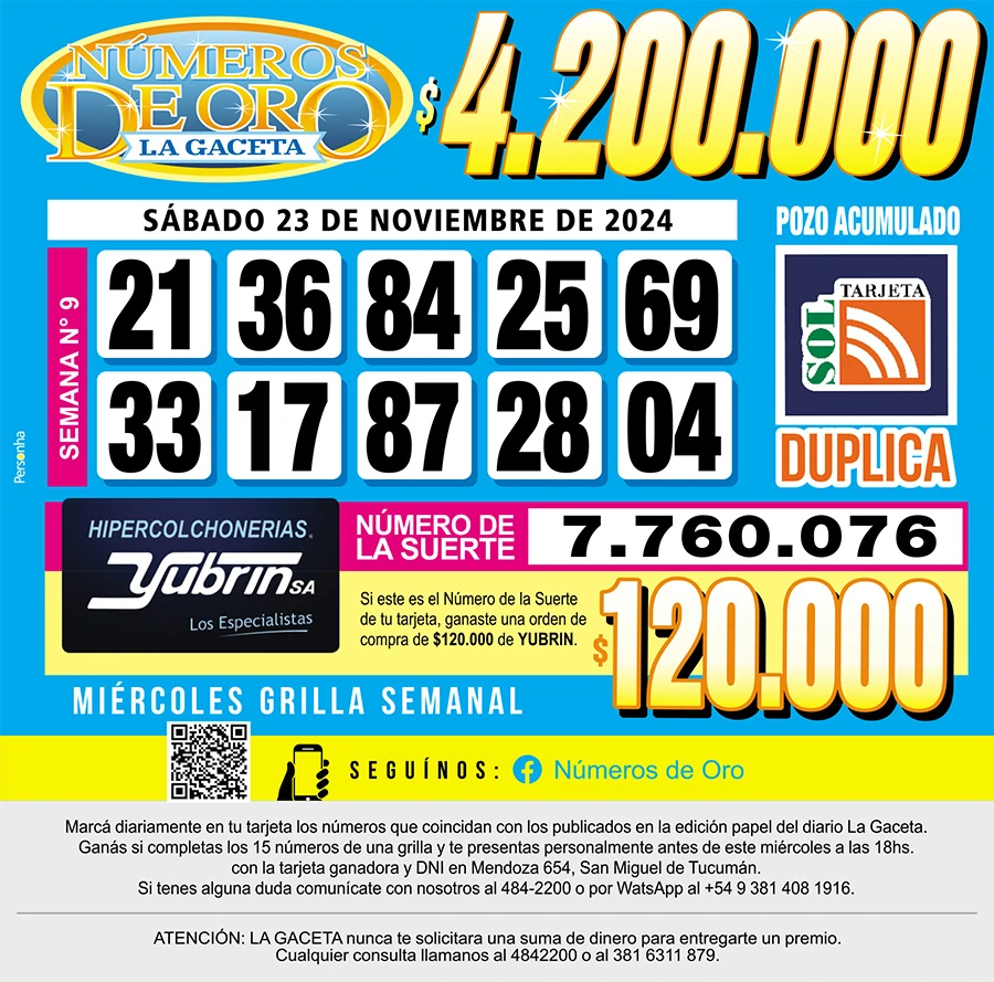 Los Números de Oro de LA GACETA del 23 de noviembre de 2024