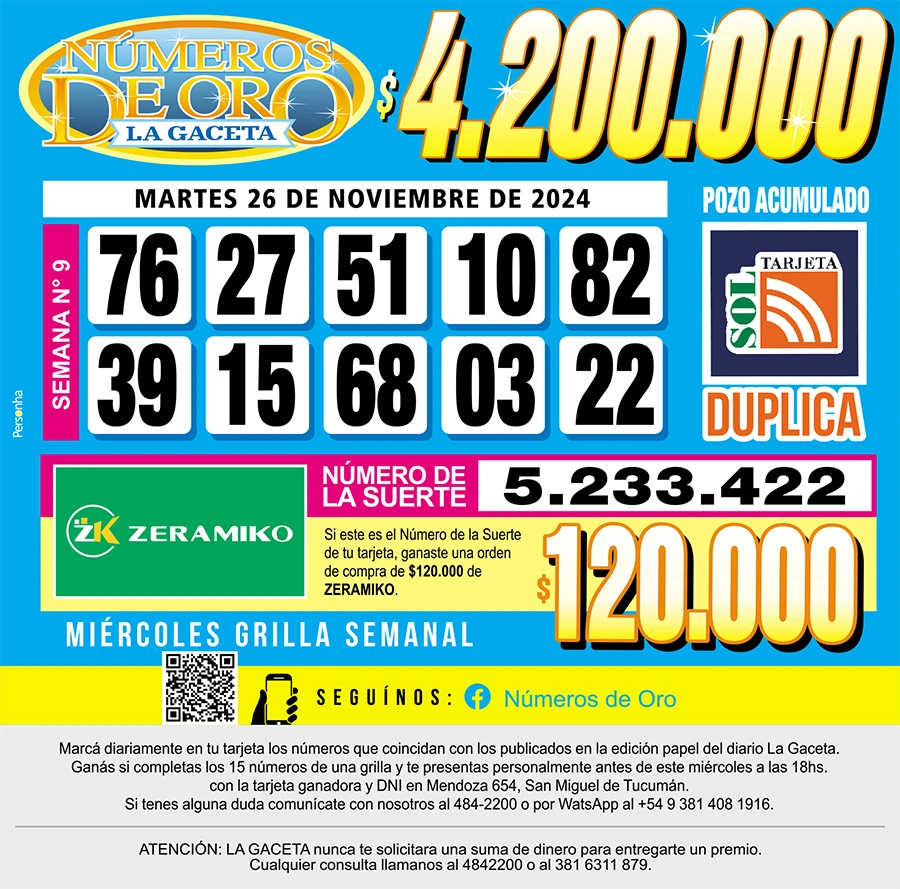 Los Números de Oro de LA GACETA del 26 de noviembre de 2024