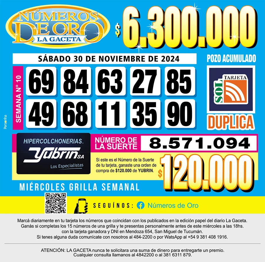 Los Números de Oro de LA GACETA del 30 de noviembre de 2024