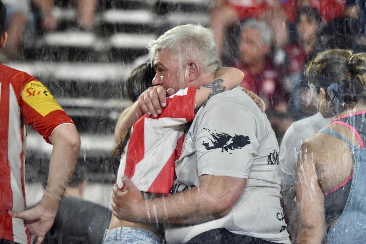 CONTENCIÓN. Los fanáticos se abrazan, tras la eliminación de San Martín contra Gimnasia de Mendoza en el Reducido. Foto de Inés Quinteros Orio/ LA GACETA.