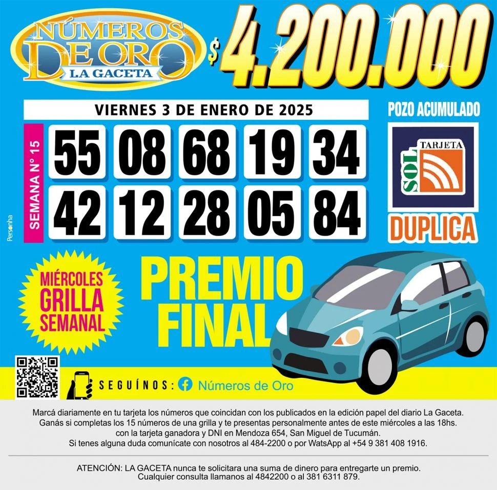 Los Números de Oro de LA GACETA del viernes 3 de diciembre