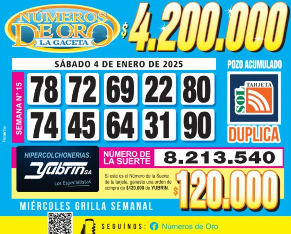 Los Números de Oro de LA GACETA del 4 de enero de 2025
