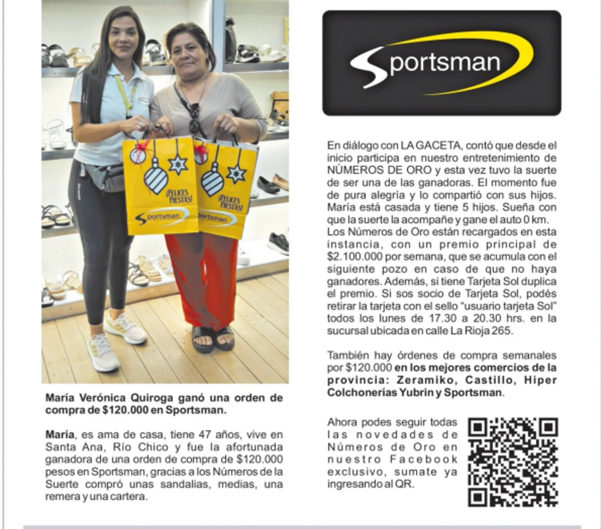Números de la Suerte: María Verónica Quiroga ganó una orden de compra de $120.000 en Sportsman