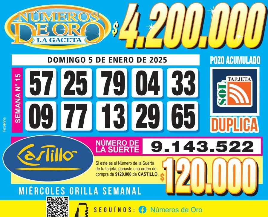 Los Números de Oro de LA GACETA del 5 de enero de 2025