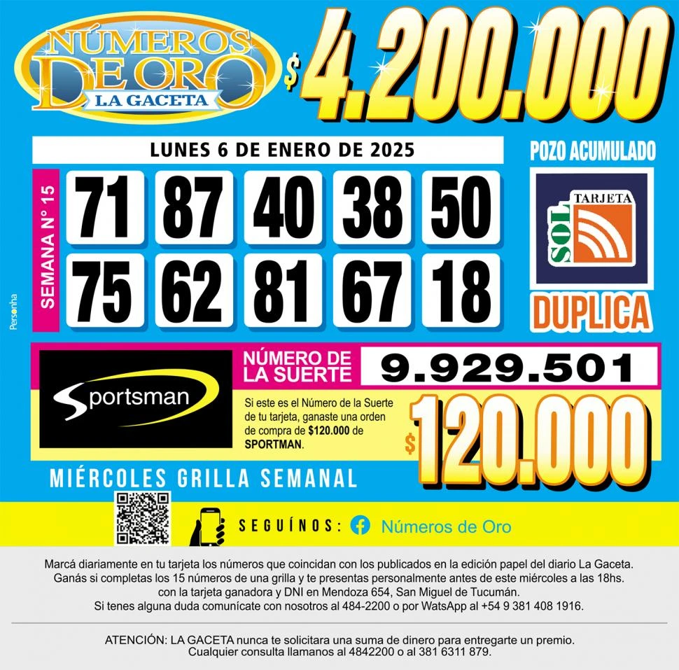 Los Números de Oro de LA GACETA del 6 de enero de 2025