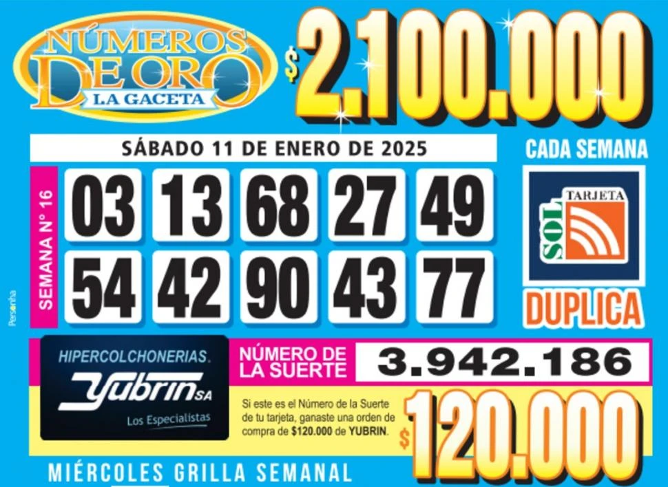 Los Números de Oro de LA GACETA del sábado 11 de enero de 2025
