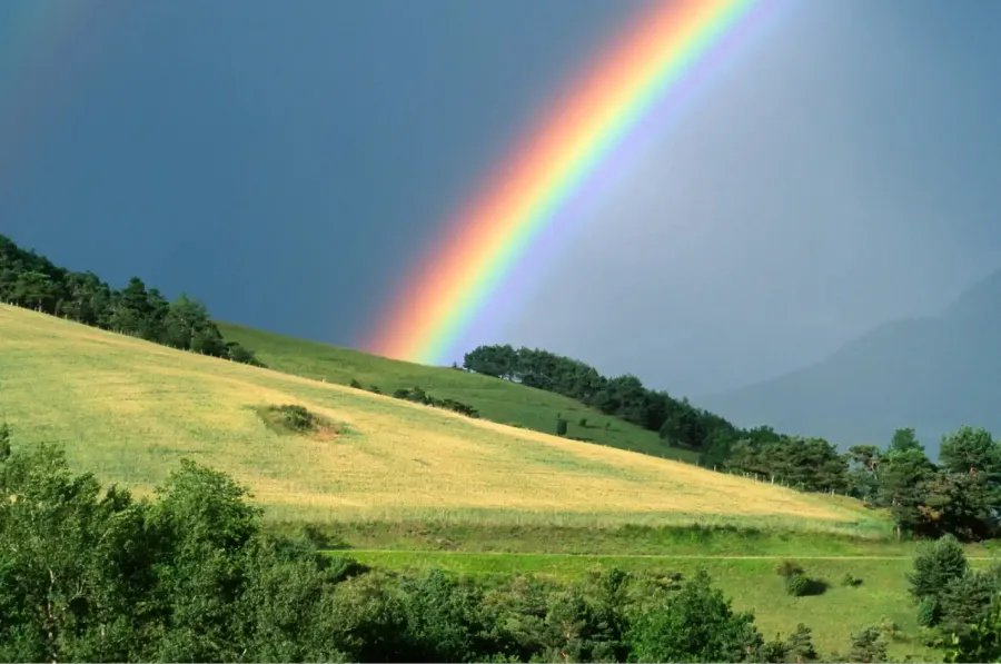 Esperanza tras la tormenta. El arcoíris se forma cuando los rayos de sol atraviesan las gotas de agua después de una lluvia, simbolizando la esperanza que surge tras la tormenta. En la Biblia, el arcoíris aparece como un pacto de paz en la historia del arca de Noé, representando un nuevo comienzo después del diluvio.