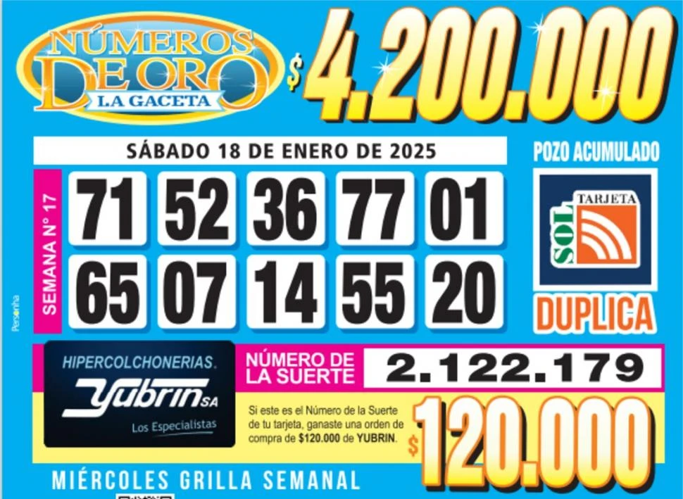 Los Números de Oro de LA GACETA del 18 de enero de 2025