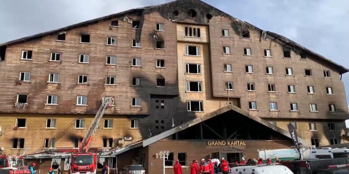 El siniestro se produjo en la marugada de este martes en el Grand Kartal Hotel, un edificio de 12 plantas en una estación de esquí al noroeste turco. El fuego comenzó sobre las 3.30 en el hotel, construido en madera, en el centro de esquí de Kartalkaya, en una popular zona de esquí en las montañas de la provincia de Bolu.