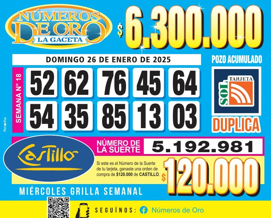 Los Números de Oro de LA GACETA del 26 de enero de 2025