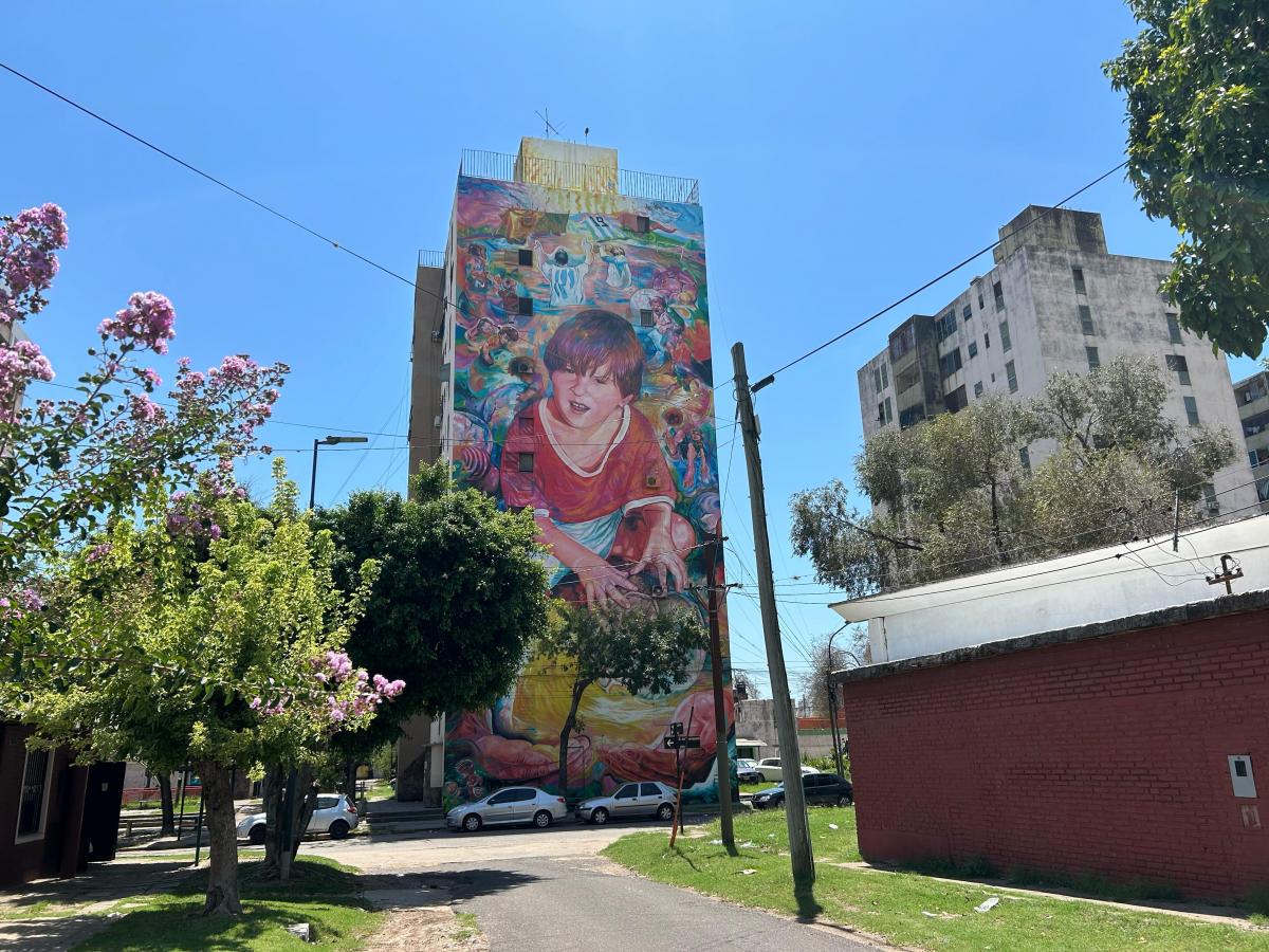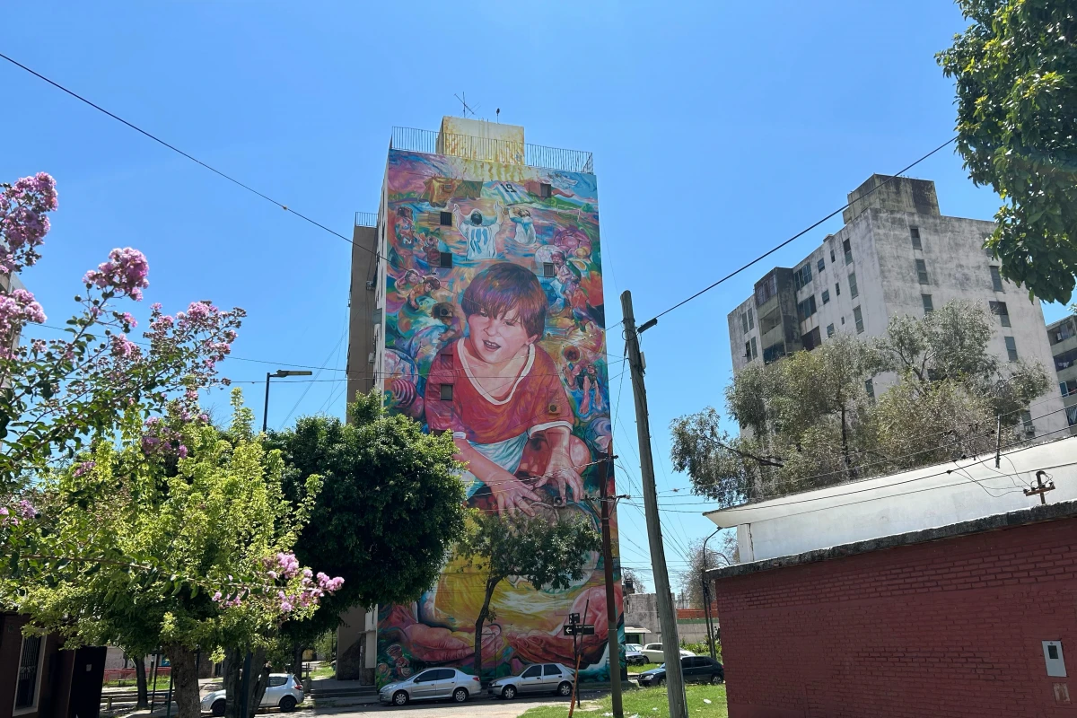 La intervención artística, a cargo de Lisandro Urteaga, Marlene Zuriaga y Gabriel Griffa, con la colaboración del ilustrador Aldo Vercellino, cubre la Torre 6 de los monoblocks del barrio y se convirtió en un punto de referencia para los fanáticos que visitan la ciudad en busca de las raíces del ídolo.