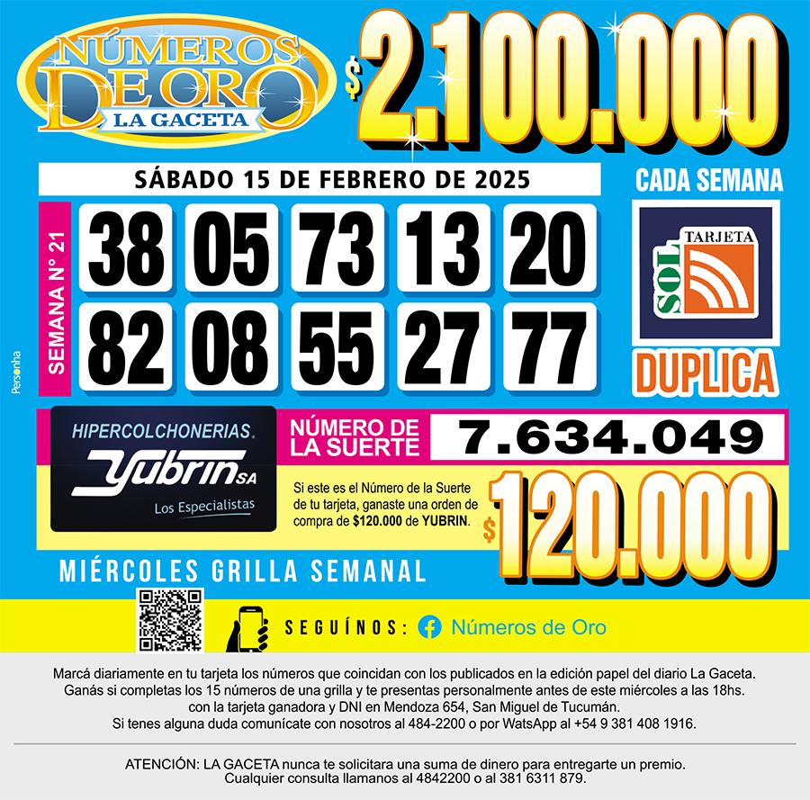 Los Números de Oro de LA GACETA del 15 de febrero de 2024