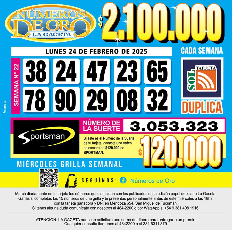 Los Números de Oro de LA GACETA del 24 de febrero de 2025