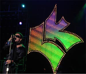 CON LOS COLORES DE BOCA.- La guitarra con la que tocó Kravitz estaba pintada con los colores auriazules del estadio. Sus últimas temas fueron "Again" y "Are you gonna go my way".