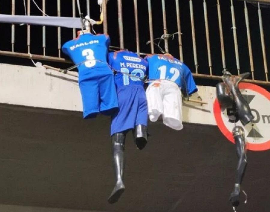 Tras la eliminación en semis, aparecieron muñecos con los nombres de los futbolistas del primer equipo fueron colocados sobre un paso elevado, sin cabezas, con las piernas colgando y con manchas que simulaban ser sangre.