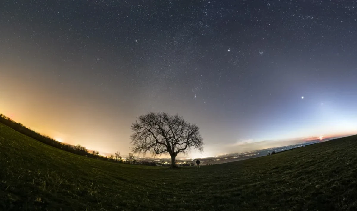 La mayoría de los siete planetas fueron visibles en el cielo nocturno desde enero, y Mercurio fue el último planeta en unirse a la procesión mientras ascendía a su punto más alto sobre el horizonte. Usando a Mercurio como guía, Dury pudo medir las posiciones relativas de los otros cuerpos celestes y tomó fotografías con múltiples niveles de exposición para capturar la luz de los planetas más brillantes y más tenues.