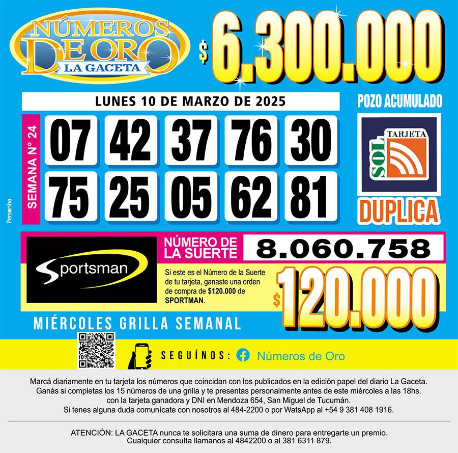 Los Números de Oro de LA GACETA del 10 de marzo de 2025