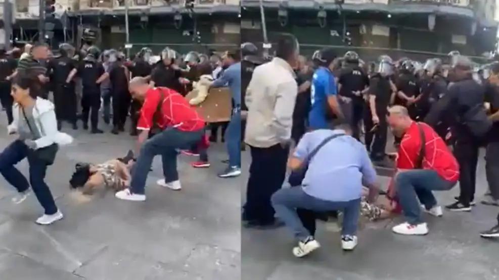 En medio de los incidentes ocurridos durante la marcha de los jubilados en el Congreso, un caso de brutal agresión policial tuvo lugar contra una mujer mayor que se manifestaba pacíficamente. Se trata de un efectivo que agredió a una jubilada que no estaba provocando ningún disturbio, lo que generó que esta cayera de espaldas y se golpeara fuertemente la cabeza contra el pavimento.