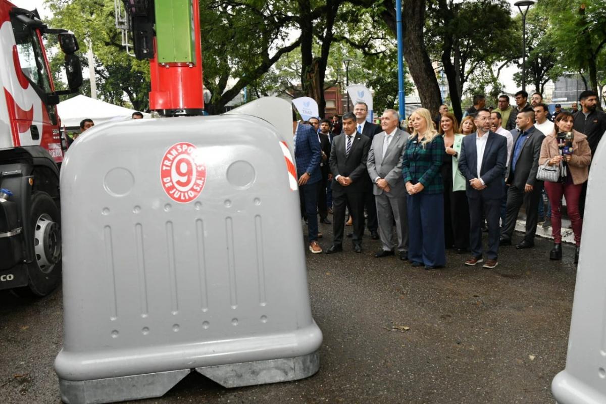 El gobernador, Osvaldo Jaldo, participó en la mañana del miércoles de la presentación de los 70 contenedores de basura "antivandálicos" y dos camiones recolectores, a cargo de la empresa 9 de Julio. Estos dispositivos poseen un sistema de apertura similar a la de un buzón, lo que permite que solamente se pueda ingresar la basura al contenedor de forma manual, pero no sacarla.