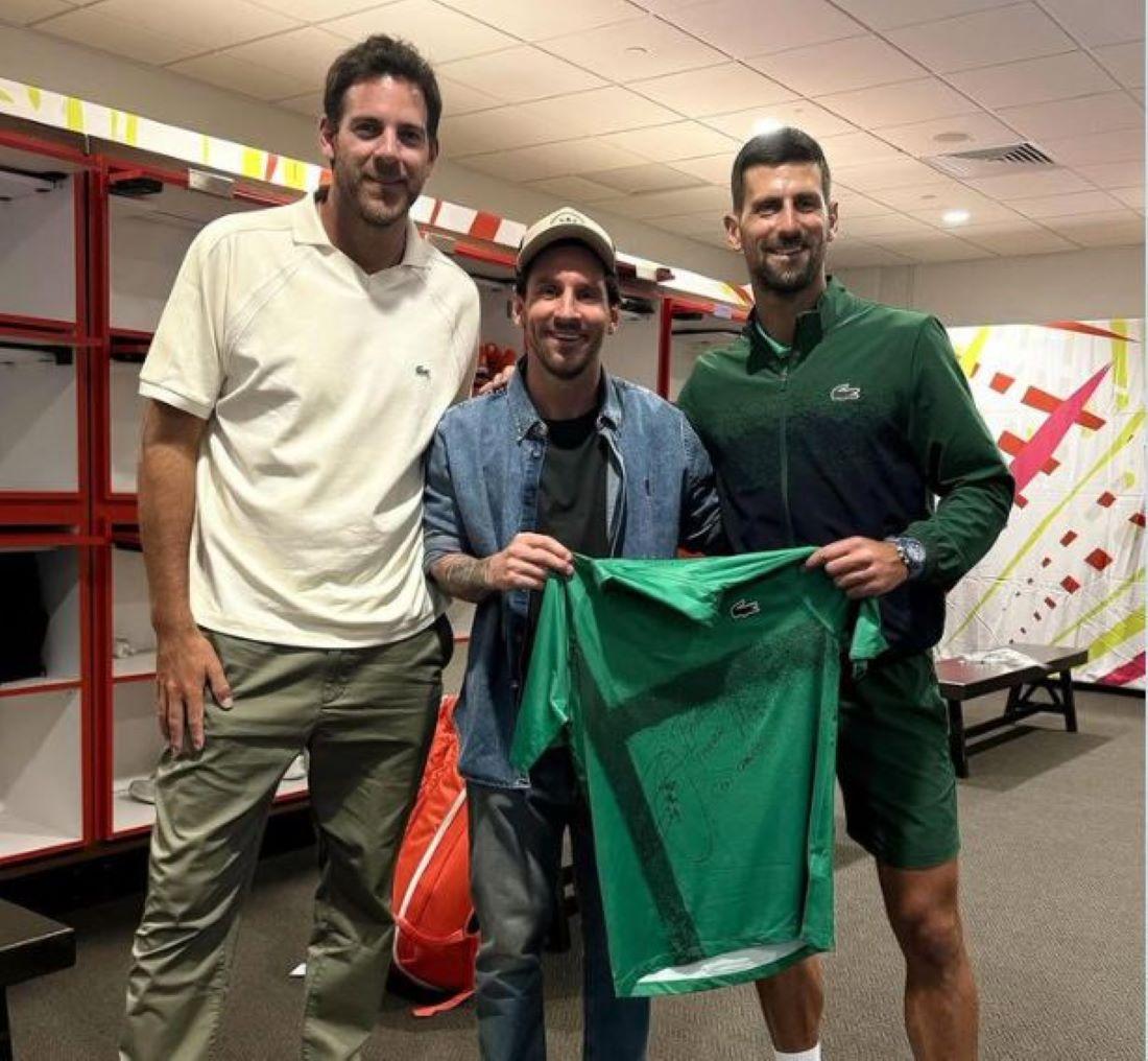 Messi fue espectador de la paliza que Djokovic le dio a Dimitrov y después se unió a otra leyenda