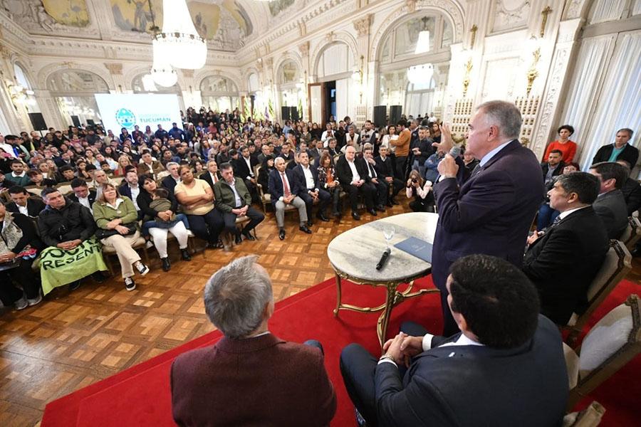 Junto al mandatario tucumano, acompañaron el vicegobernador, Miguel Acevedo; el vicepresidente primero de la Legislatura, Aldo Salomón; el ministro de Obras y Servicios Públicos, Marcelo Nazur; y el interventor del Instituto Provincial de Vivienda y Desarrollo Urbano (Ipvdu), Hugo Cabral, entre otros.