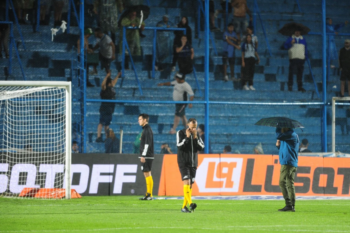 SIN RESPUESTAS. Darío Herrera evaluó el estado del campo de juego y decidió suspender el partido. Foto de Diego Aráoz/LA GACETA.