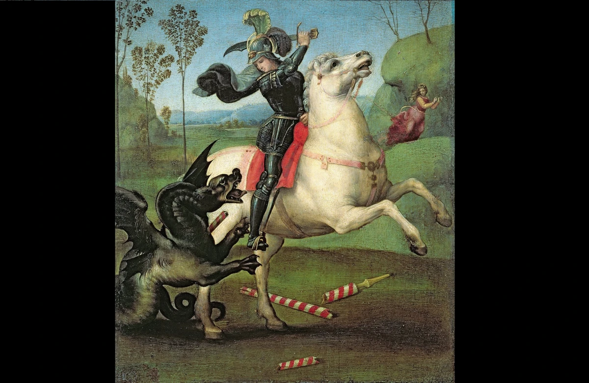 San Jorge, cuyo culto es tan amplio que atraviesa iglesias de Oriente y Occidente, fue un oficial romano que vivió entre los siglos III y IV, y que, según la tradición, murió decapitado por negarse a renunciar a su fe cristiana durante la persecución del emperador Diocleciano. Su imagen más popular, la del guerrero enfrentando a un dragón, ha sido interpretada a lo largo de los siglos como una metáfora del alma cristiana venciendo al pecado, la injusticia y la desesperanza.