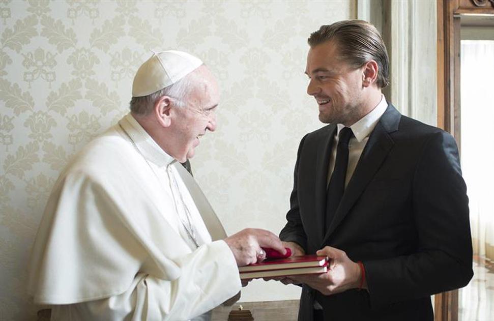 VISITA. En 2016, el Papa Francisco recibió al actor Leonardo Di Caprio.