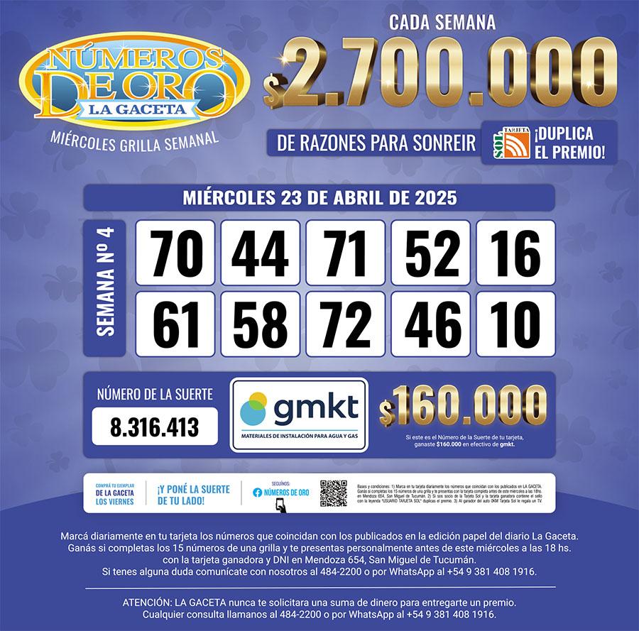 Los Números de Oro de LA GACETA del 23 de abril de 2025