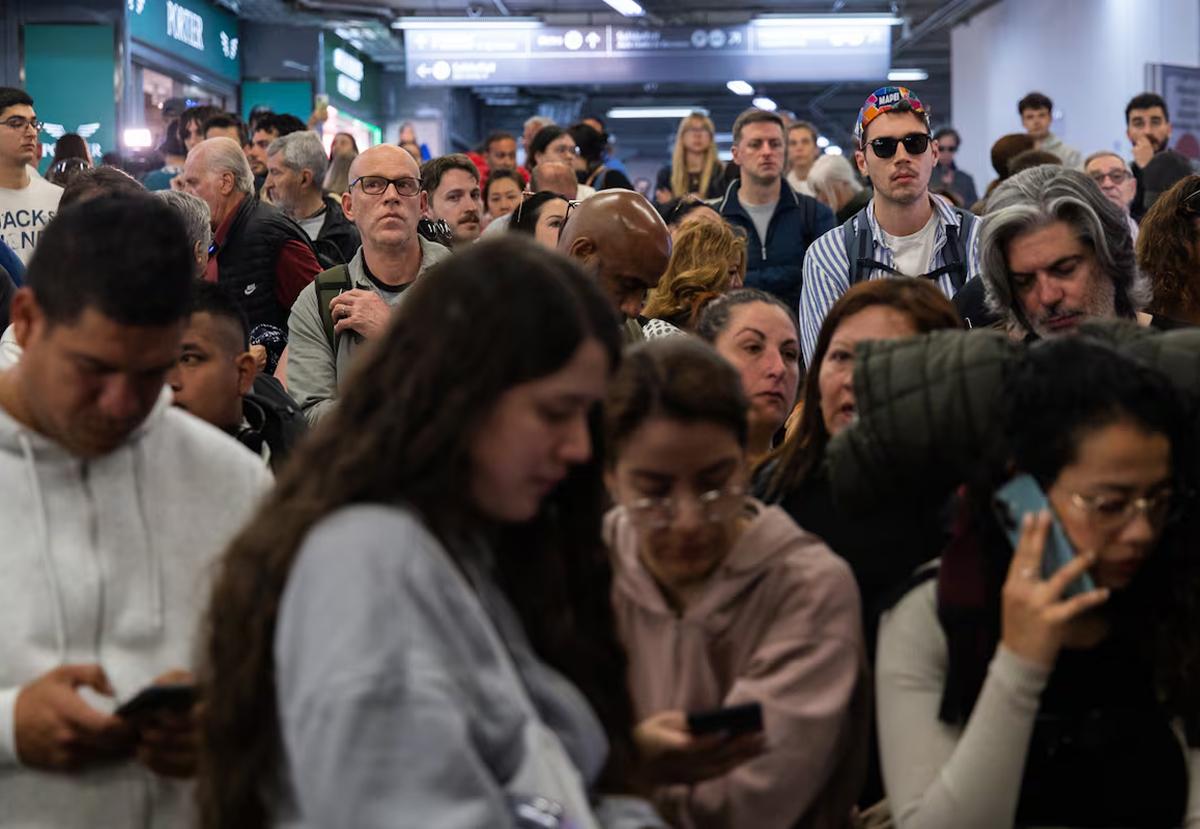 El servicio de trenes aún no fue restablecido completamente. Pasajeros esperan varados en una estación de Madrid. Foto: Moeth Atitar