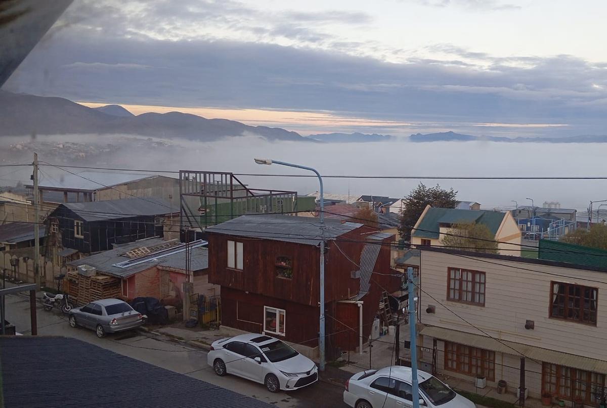 NIEBLA. Frente a Ushuaia, el Canal de Beagle se cubrió ayer de una densa capa neblinosa, un fenómeno que no es común, según cuentan residentes.