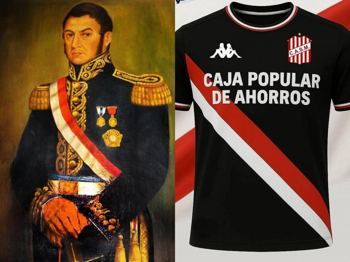 La nueva casaca alternativa es de color negro, con una banda cruzada en rojo y blanco que remite al retrato clásico del Libertador tras la declaración de la independencia del Perú. El diseño no es casual: hace alusión directa al título de “Protector del Perú”, que le fue conferido por el gobierno autónomo de ese país el 28 de julio de 1821, el mismo día en que San Martín proclamó su independencia ante una multitud reunida en la Plaza Mayor de Lima. La banda bicolor formaba parte de su vestimenta oficial en aquellos tiempos y, desde entonces, es un símbolo imborrable del ideal emancipador.