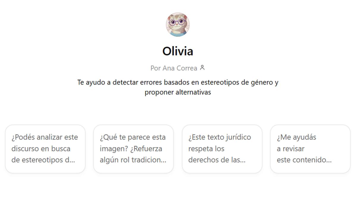 La inteligencia artificial (IA) está avanzando a pasos agigantados. Pero con ella también se trasladan y, muchas veces, amplifican, los sesgos sociales y culturales. Con el fin de contrarrestar esa tendencia nació OlivIA, una herramienta de ChatGPT especialmente entrenada para detectar estereotipos de género, desigualdades simbólicas o estructurales, y promover mayor equidad. OlivIA está disponible al público desde el lunes 5 de mayo.