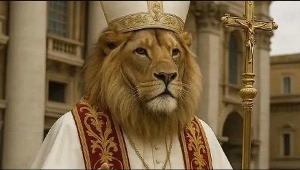 El texto fue acompañado por una imagen realizada con inteligencia artificial, donde se ve el cuerpo del sumo pontífice con las vestiduras tradicionales y la cabeza de un león.