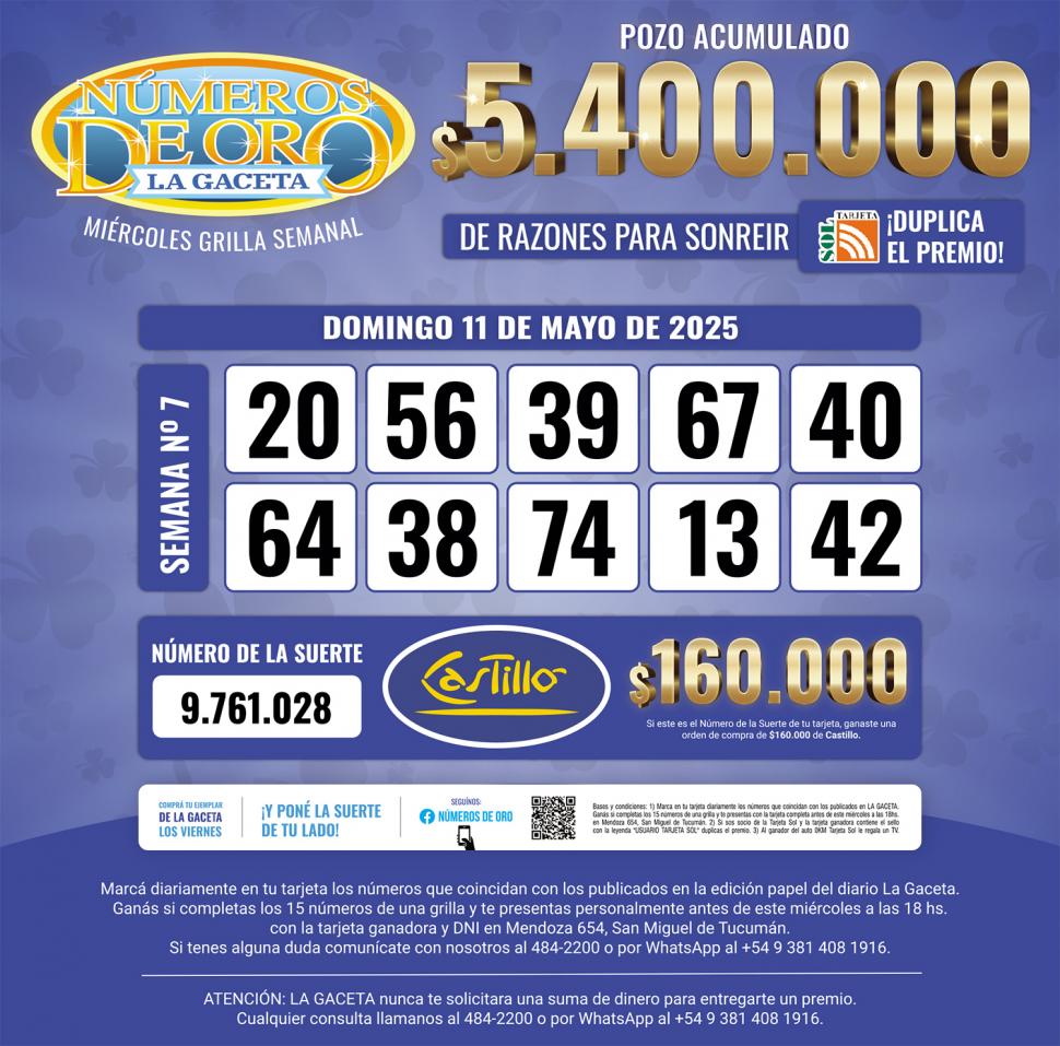 Los Números de Oro de LA GACETA del 11 de mayo de 2025
